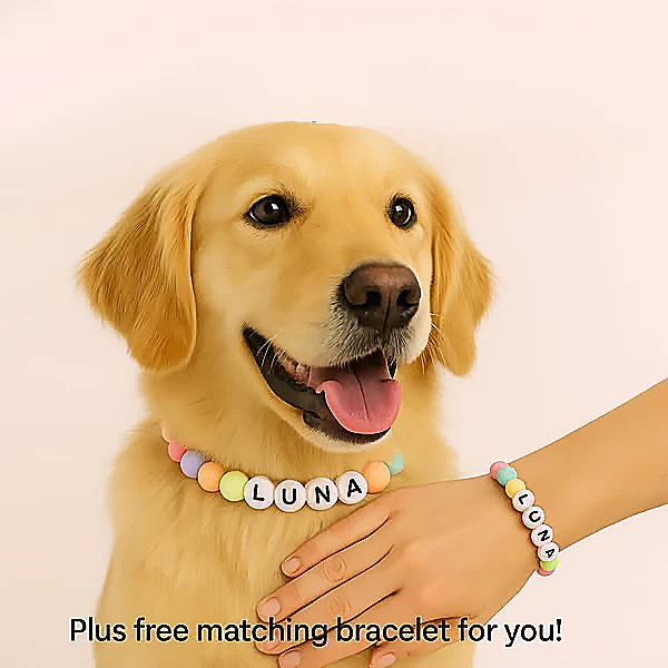 Your pup deserves to stand out — and now they can, with our custom name collars. These chunky, pastel-perfect beads aren't just adorable, they're a whole personality. And yes, you get a matching bracelet too. Because your fur baby is your BFF.