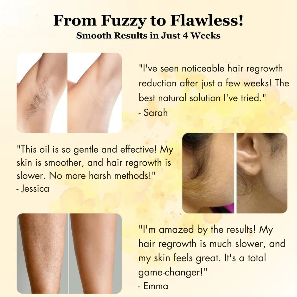 Simply apply 2–3 drops to the area after hair removal (shaving, waxing, or epilating). Massage until fully absorbed. Repeat daily for best results. Consistency is key – most customers notice a dramatic difference within 4–6 weeks.
